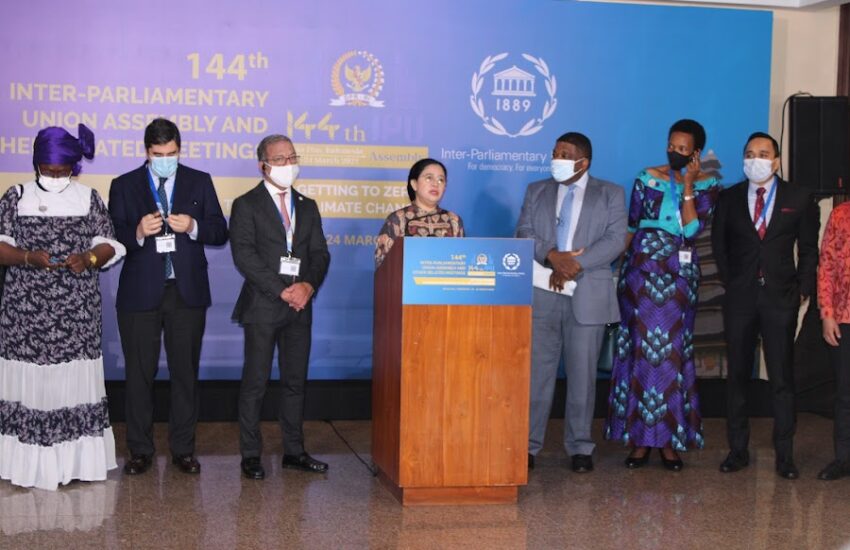 Ketua DPR RI Puan Maharani mengajak seluruh anggota IPU untuk berkomitmen mengadopsi Deklarasi Nusa Dua, yaitu resolusi perubahan iklim. Hal itu disampaikan Puan pada penutupan IPU ke-144 di Nusa Dua, Bali, Kamis (24/3/2022). Menurut Puan, perubahan iklim perlu mendapat dukungan kuat untuk melakukan upaya mitigasi dan adaptasi. Ia mengatakan saat ini negara berkembang membutuhkan dana sebesar US$ 100 miliiar untuk mengatasi perubahan iklim. Oleh karena itu, ia mengajak seluruh anggota IPU untuk menyatakan komitmen. Cucu Proklamator Bung Karno itu mengatakan, deklarasi mengenai perubahan iklim telah menyerap aspirasi yang akan terus dilanjutkan, yaitu terkait dengan penguatan aksi nasional untuk mewujudkan komitmen global. Ia pun menambahkan, dokumen Deklarasi Nusa Dua memuat berbagai hal yang dibutuhkan untuk mewujudkan komitmen parlemen dalam mencapai climate neutral tahun 2050 atau sesuai target masing-masing negara. Dalam penutupan IPU 144 ini, Mantan Menko PMK ini, kembali mengajak seluruh anggota parlemen dunia menggunakan IPU sebagai ajang untuk mewariskan dunia yang lebih baik bagi generasi muda. Pasalnya, generasi muda sudah banyak meminta pemimpin melakukan aksi nyata.